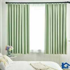May rèm vải cửa sổ màu xanh lá đẹp tự nhiên.
